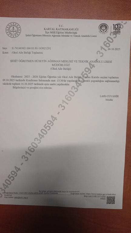 9 Ekim 2025 tarihinde saat 13:30 da okul aile birliği toplantısı...